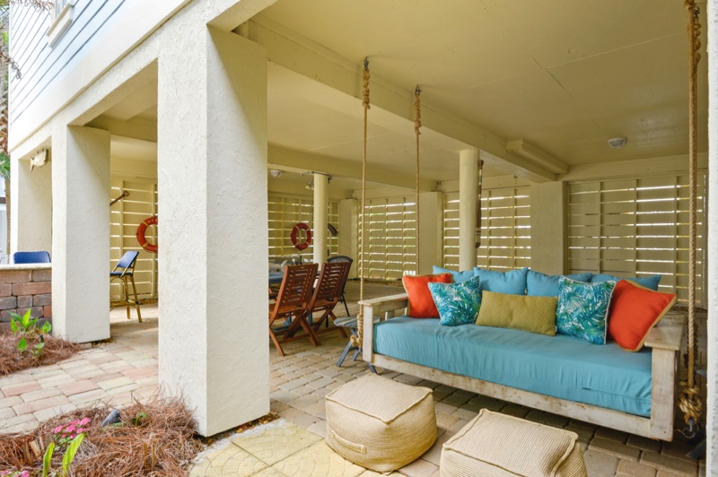 NEWLY ADDED: The downstairs area was recently renovated adding additional outdoor living and recreational areas. There is a swinging daybed for relaxing afternoon naps. The side yard area has a fire pit and seating with outdoor string lights above. There is also a grilling area with a dining table and bar for entertaining and a ping pong table for some friendly competitions.